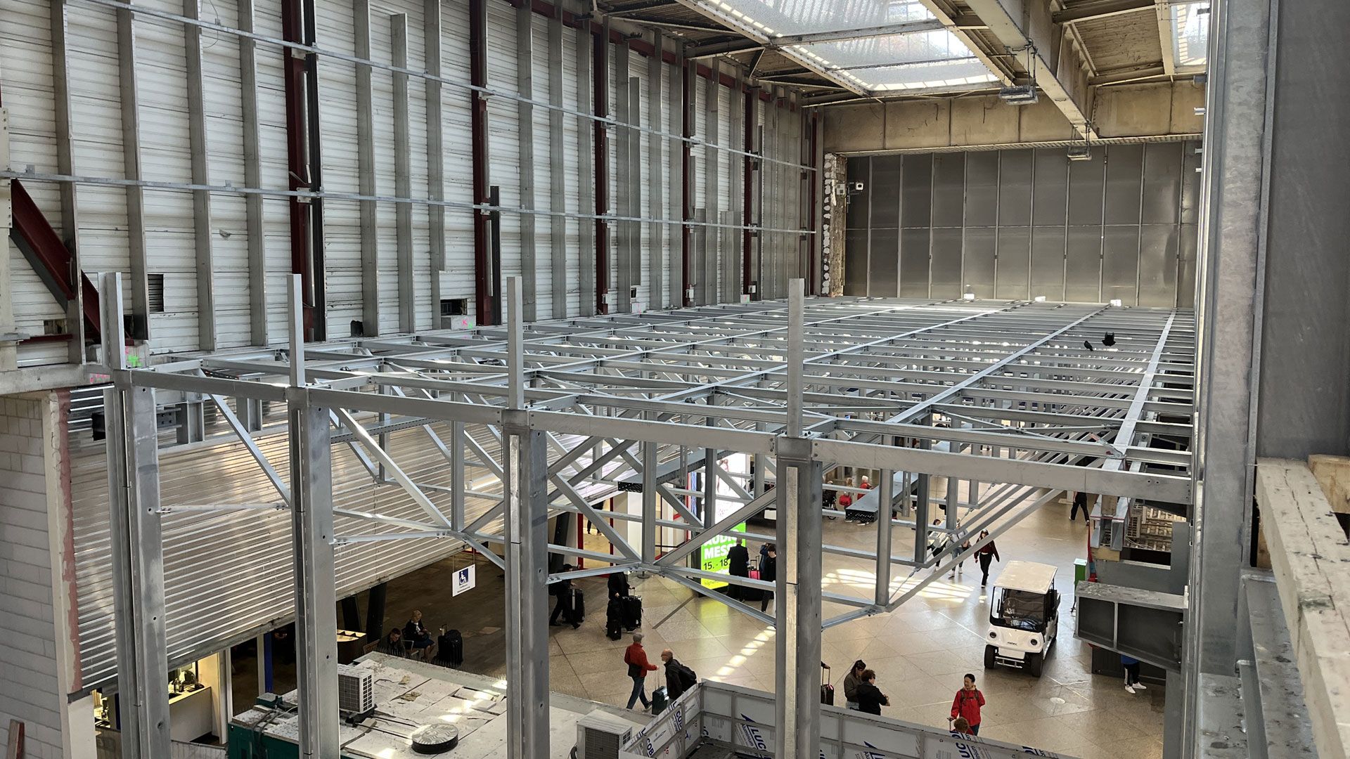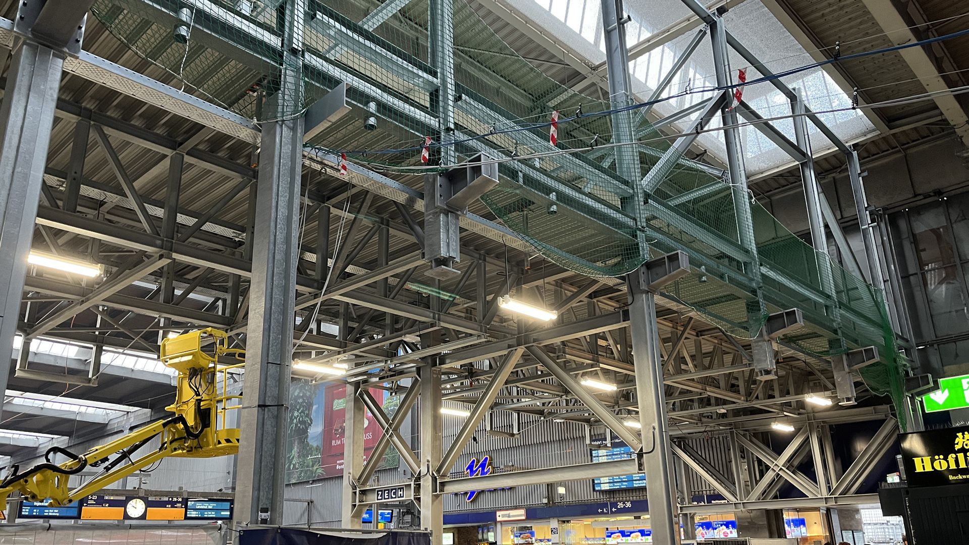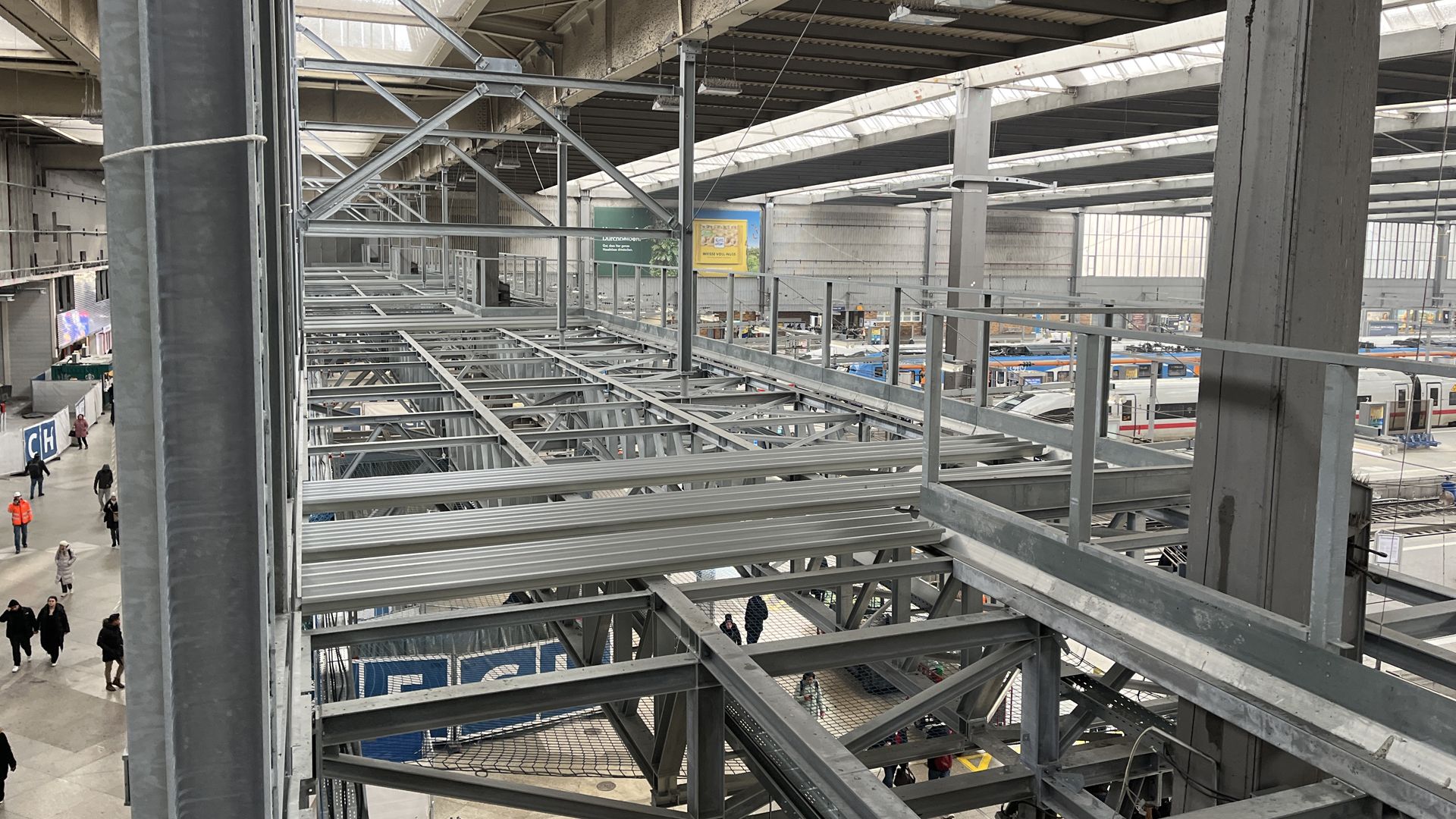 Die Konstruktion ist notwendig, um während des Abbruchs des MAN Daches die Tragkonstruktion der Bahnhofshalle abzufangen und den Raumabschluss zum Außenbereich zu gewährleisten.